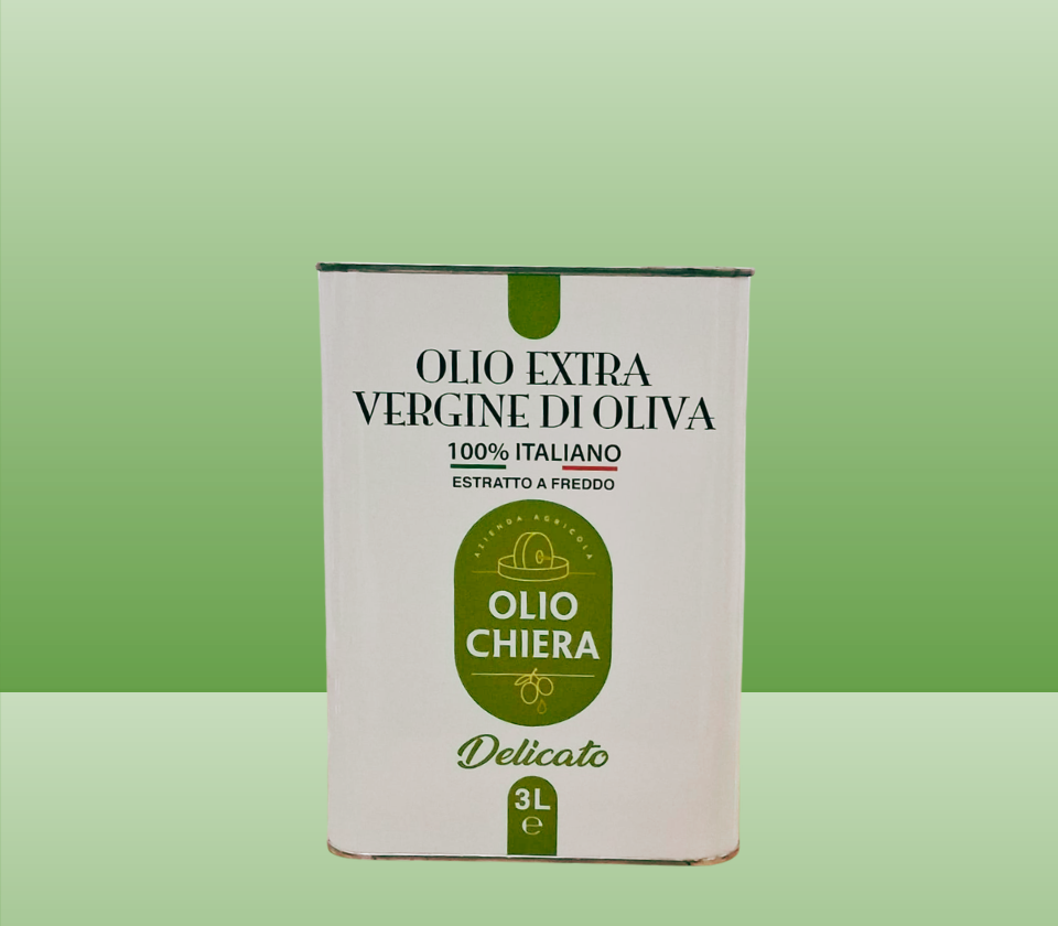 Our Delicate Extra Virgin Olive Oil is made from olives harvested in our olive groves in Puglia and Calabria. Its flavor profile is light, with sweet and almond notes, ideal for those who like to season without covering up flavors.