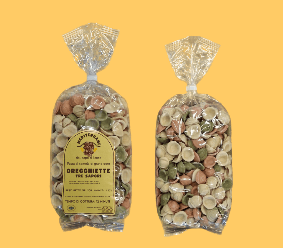 Le orecchiette a 3 sapori nascono dalla tradizione pugliese arricchita da un tocco di colore e creatività. Realizzate con semola di grano duro e ingredienti naturali come pomodoro, barbabietola e spinaci, offrono un’esperienza visiva e gustativa unica.